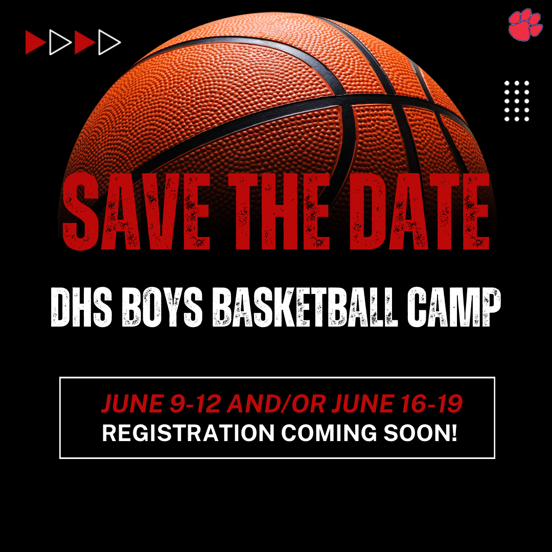 Due to popular demand, we are thrilled to offer two weeks of the DHS Boys Basketball Camp this summer - choose one week or both weeks! Camp will be held both weeks 9:00 am-3:00 pm for boys ages 6-14. It will be a fun mix of games like Knockout and King of the Court, footwork development, shooting techniques, competitive drills, stations and scrimmages. Details and registration coming soon!
